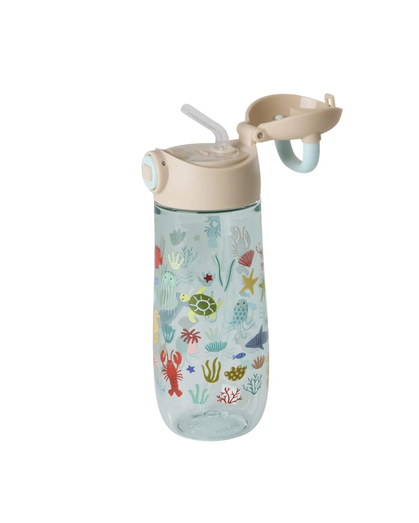 Heb je wel eens dorst onderweg? Met deze leuke kinder drinkfles met de “Ocean” print kan je gemakkelijk onderweg iets te drinken meenemen … De fles is makkelijk te gebruiken voor kleine vingertjes en de gehele fles is vaatwasmachine bestendig. De fles kan 550 ml bevatten.
