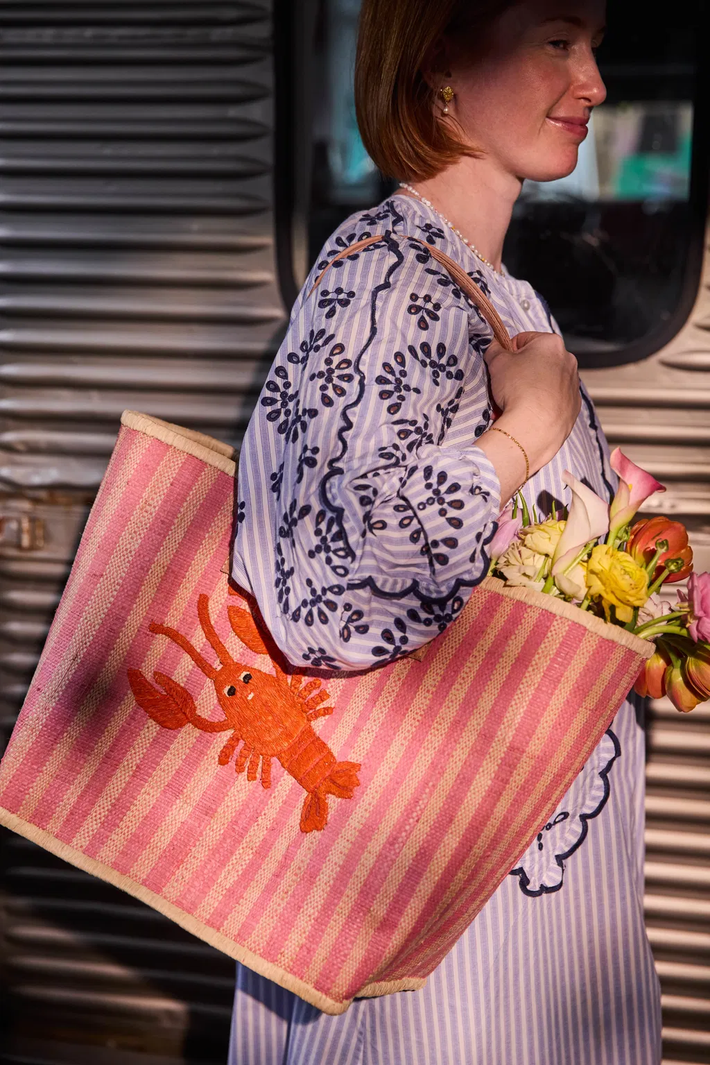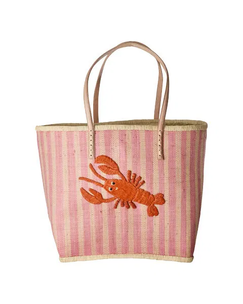 Grote raffia tas met daarop een hele leuke kreeft! Ga in stijl boodschappen doen, picknicken of naar het strand!