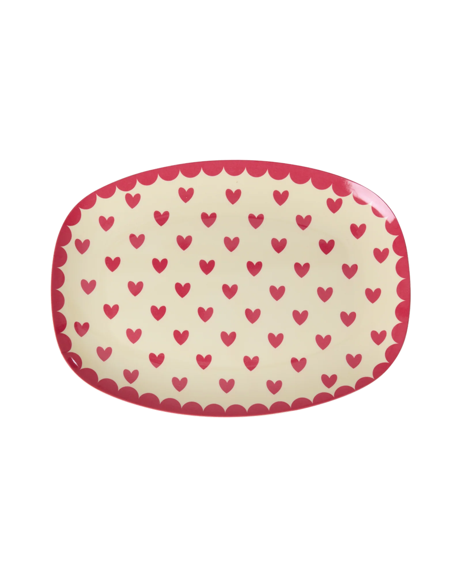 Rice: Klein Rechthoekig Melamine Bord – Favorite Hearts Print Rood MELCP-RECFAVRK