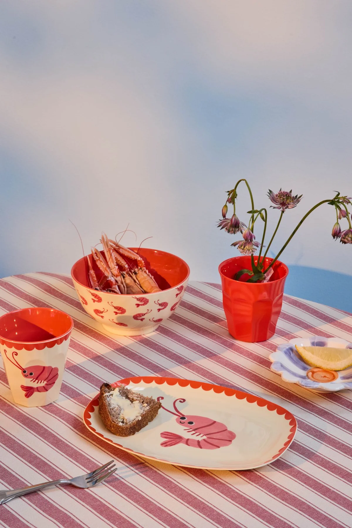 Rice: Klein Rechthoekig Melamine Bord – New Shrimp Print MELCP-RECNSHR