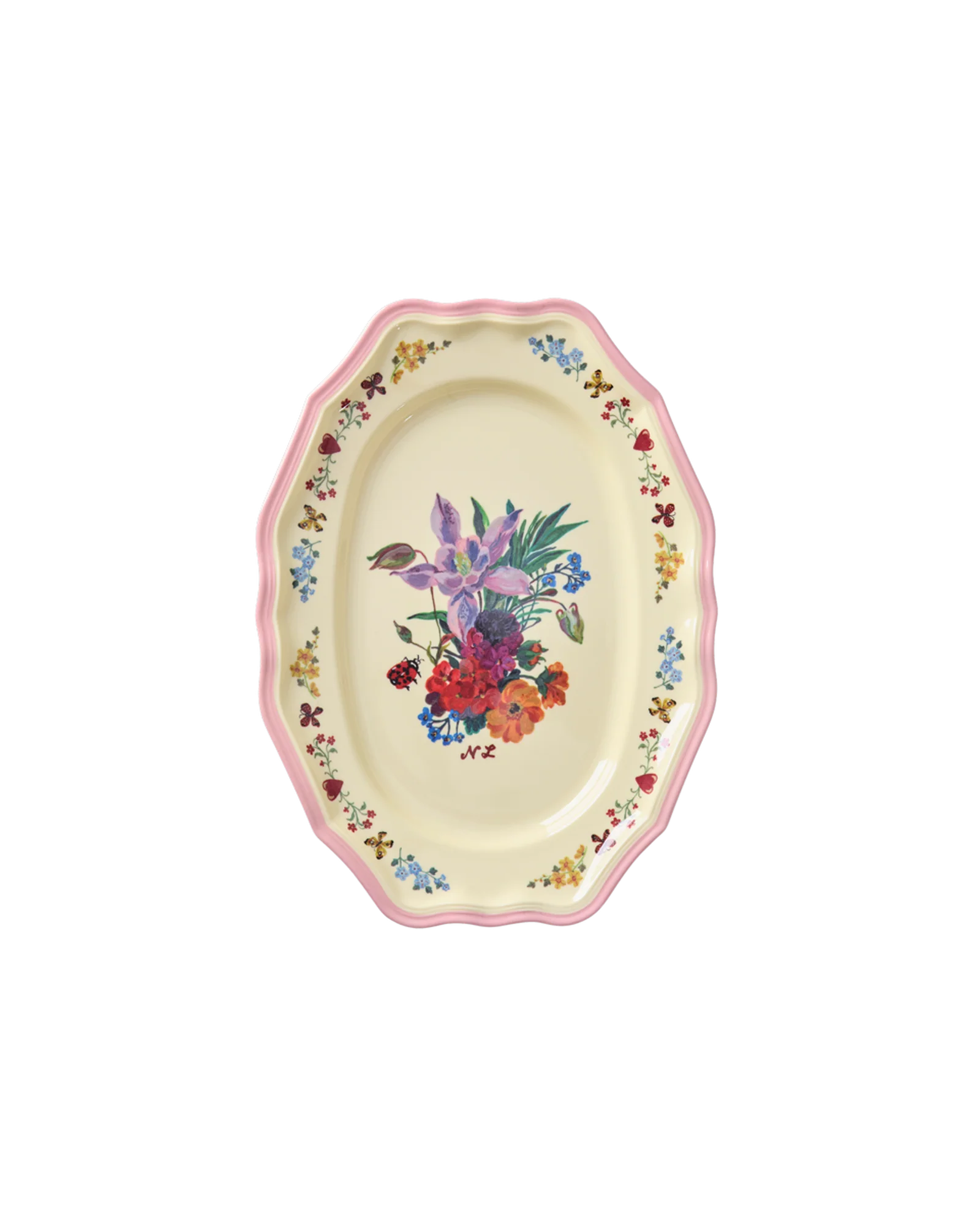 Serveer je heerlijke gerechten in een op vintage geïnspireerde serveerschaal. De schaal zit vol met grappige en prachtige details. Alles is ontworpen door Nathalie Lété. De schaal is gemaakt van melamine en meet B19 x L26 cm, dus er is genoeg ruimte voor heel veel lekkers.