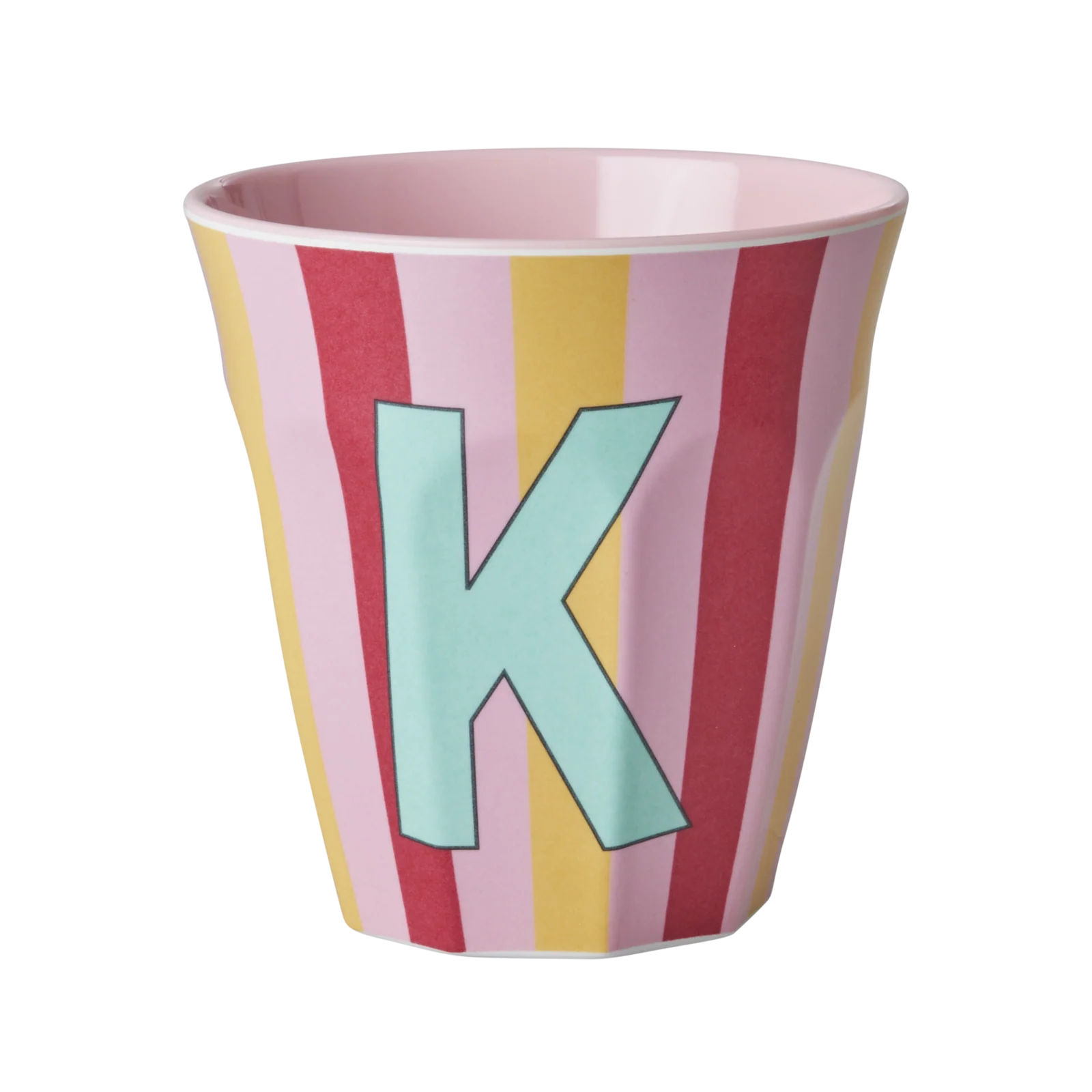 Rice: Medium melamine beker – Alfabet – K Roze Streep MELCU-ALPSTRKI