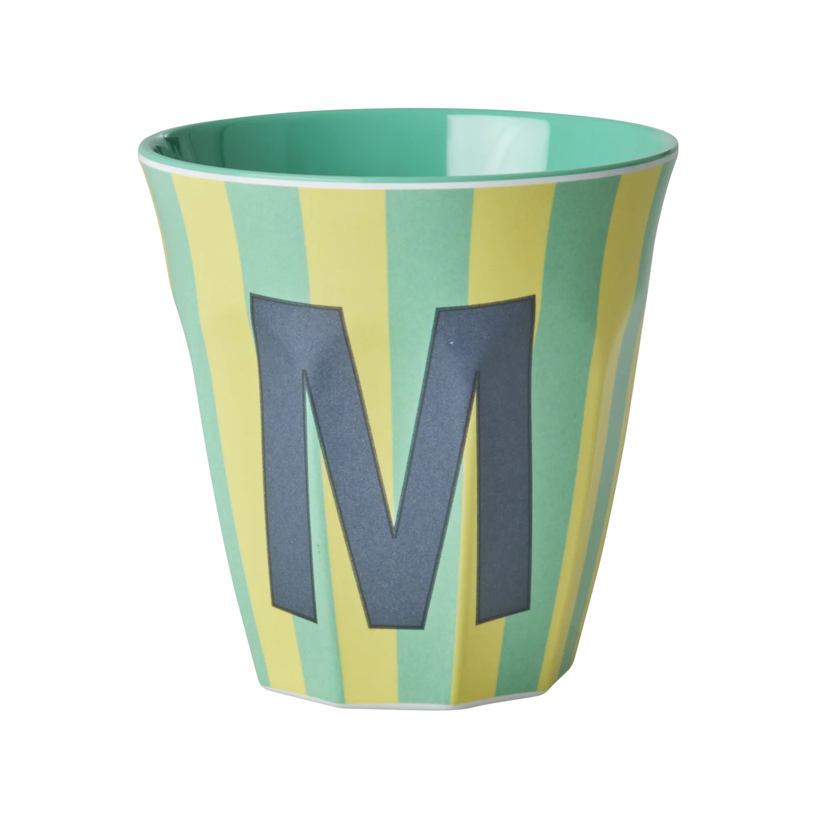 Rice: Medium melamine beker – Alfabet – M Blauw Streep