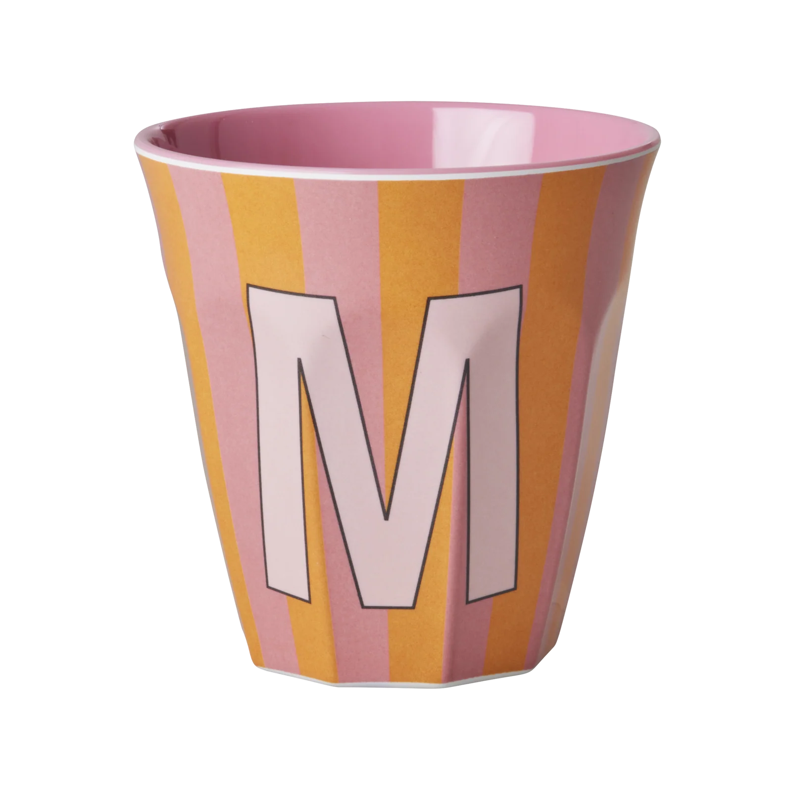 Rice: Medium melamine beker – Alfabet – M Roze Streep MELCU-ALPSTRMI