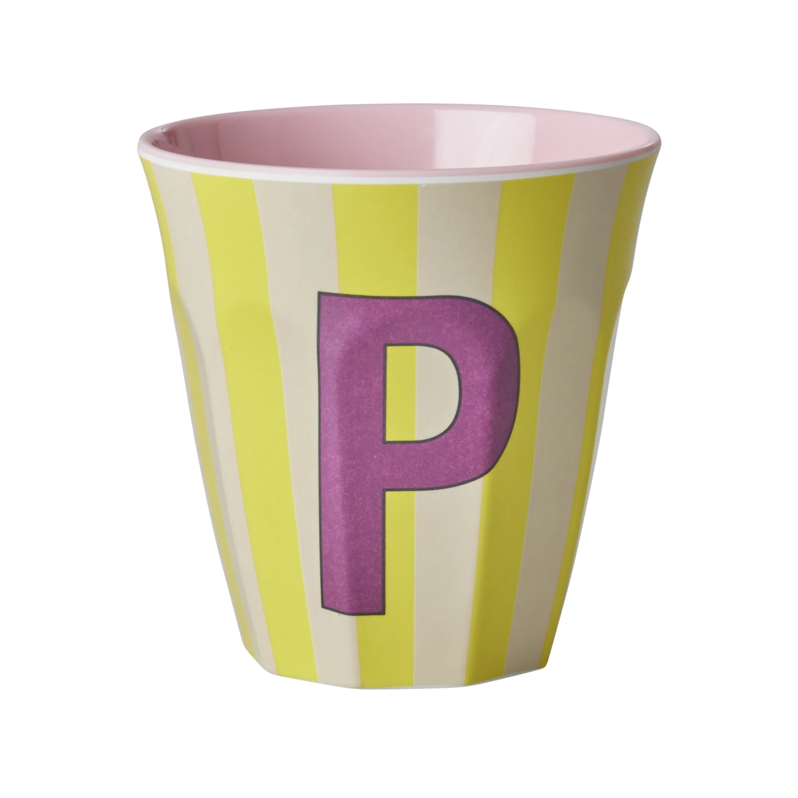 Rice: Medium melamine beker - Alfabet - P Roze Streep MELCU-ALPSTRPI