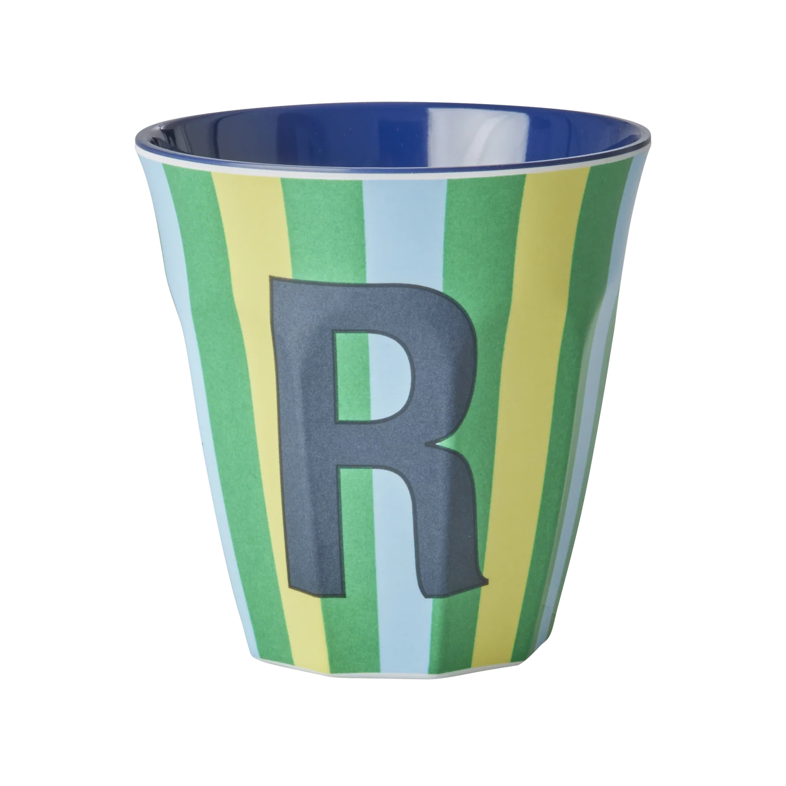 Rice: Medium melamine beker - Alfabet - R Blauw Streep MELCU-ALPSTRRB