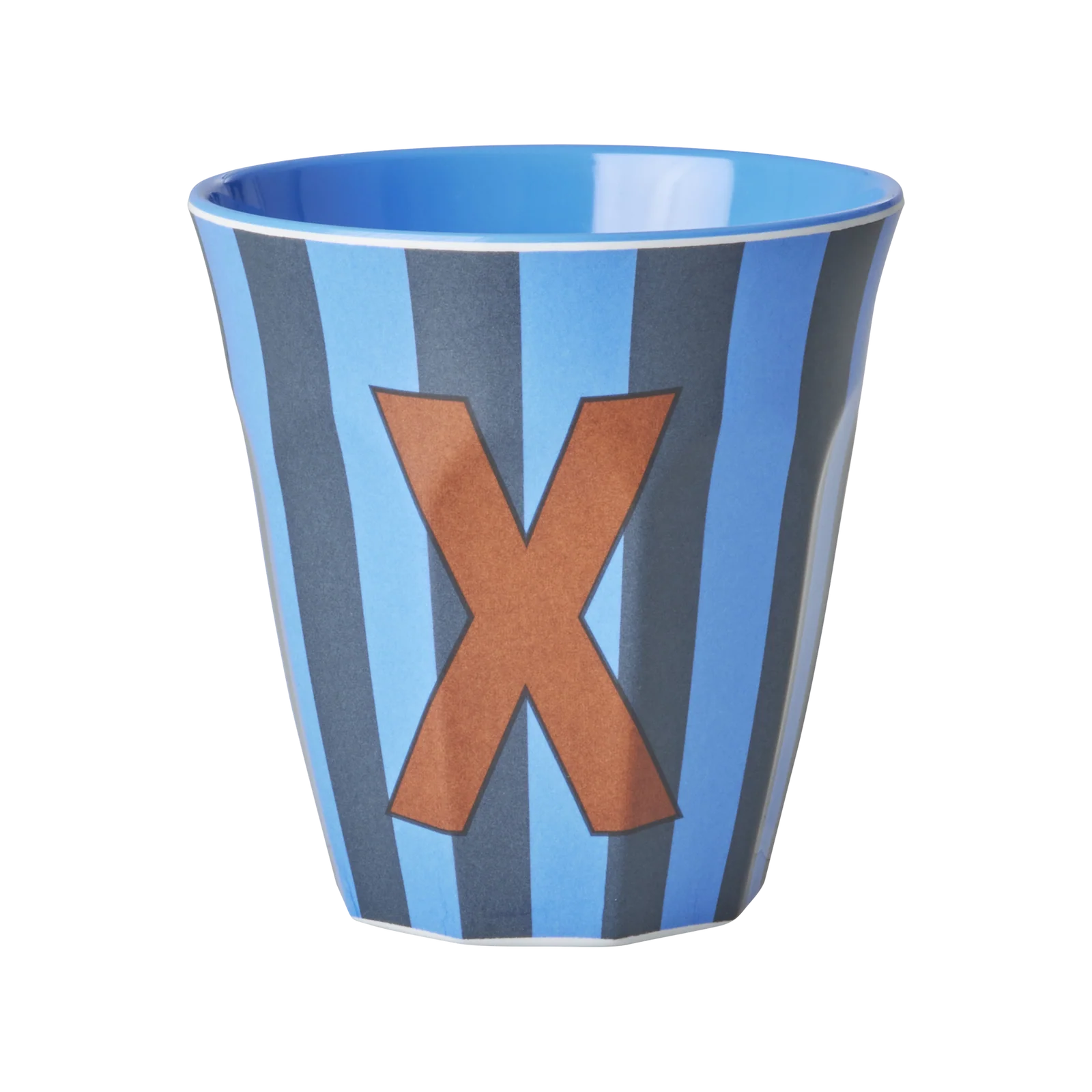 Rice: Medium melamine beker – Alfabet – X Blauw Streep MELCU-ALPSTRXB
