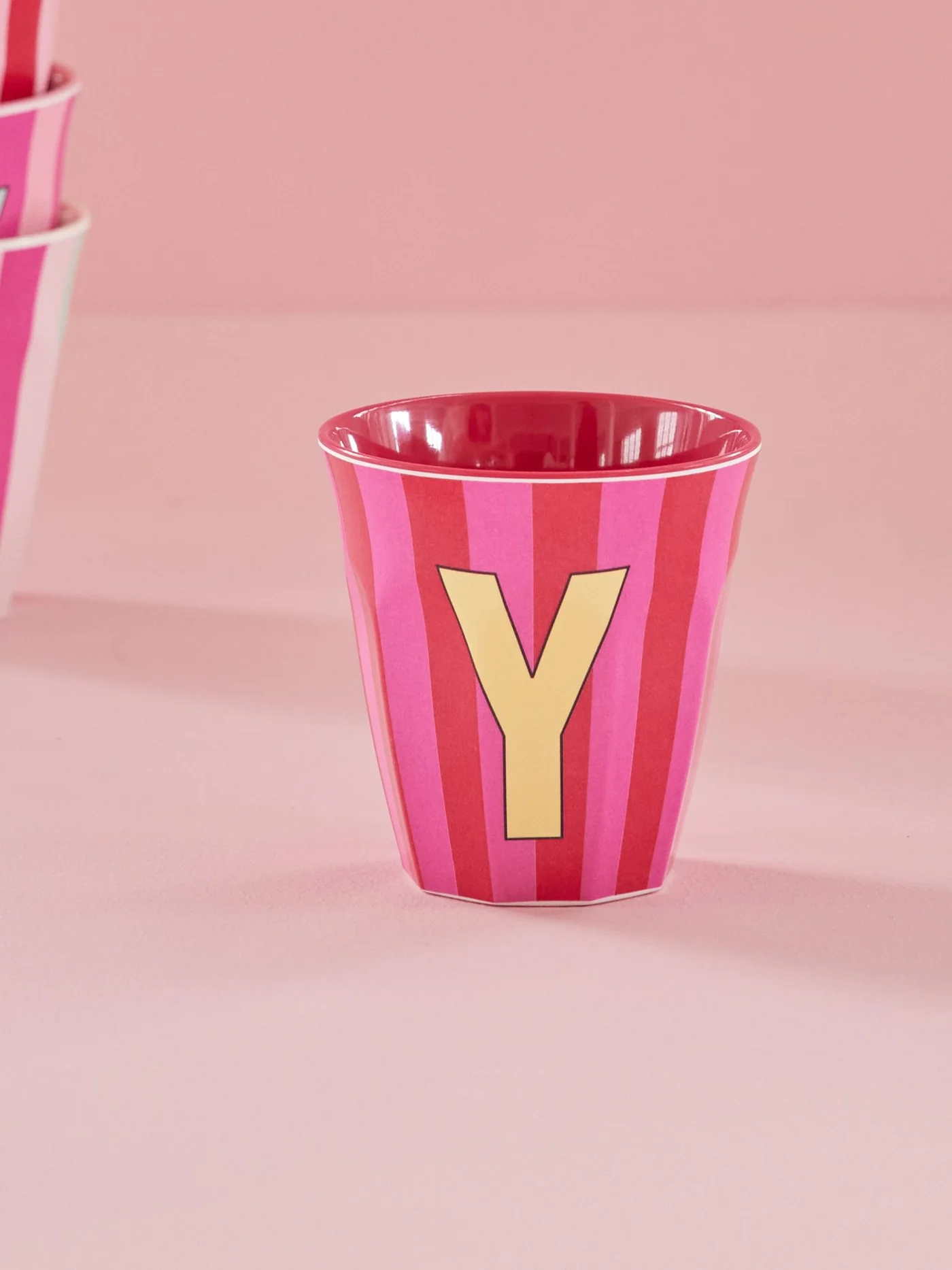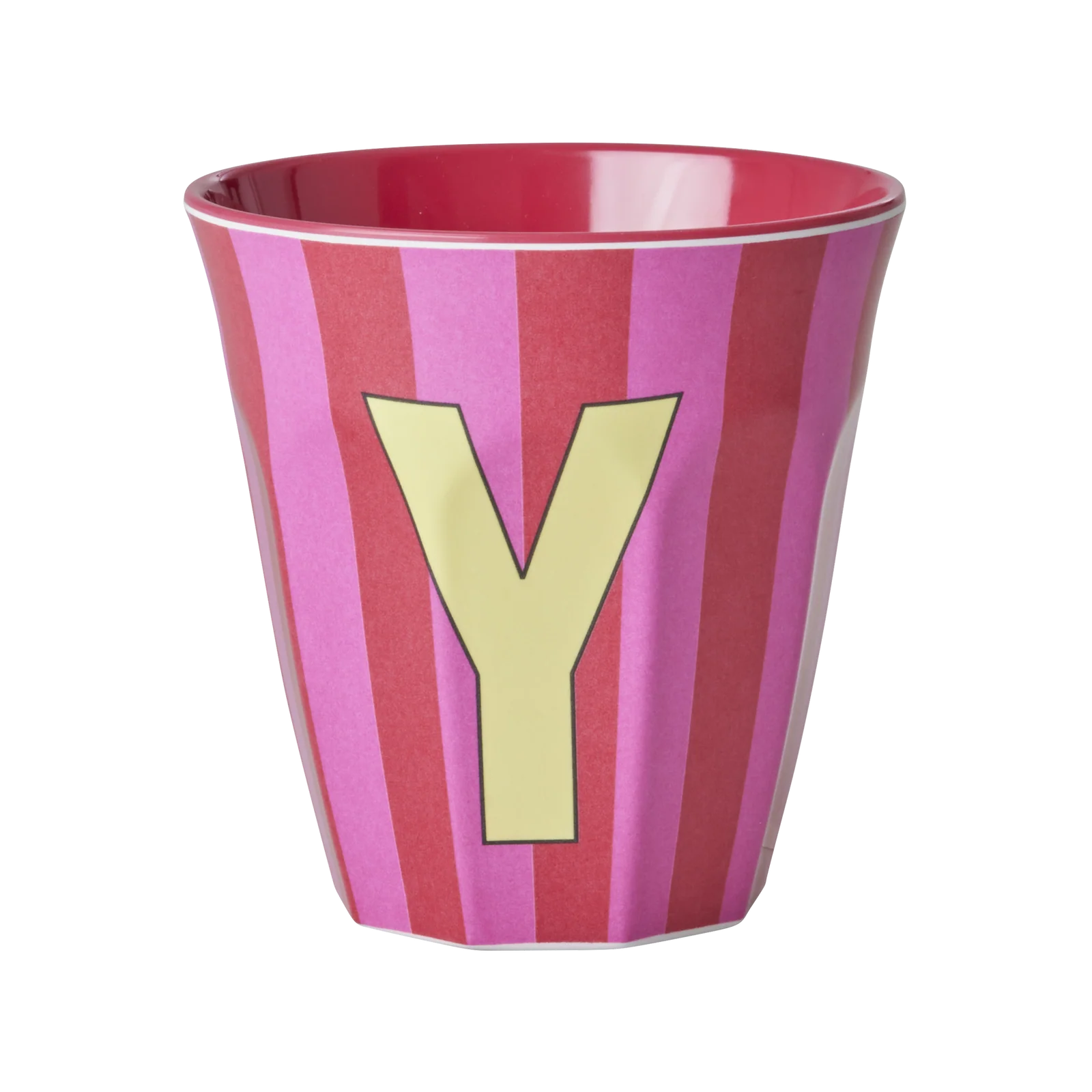 Rice: Medium melamine beker - Alfabet - Y Roze Streep MELCU-ALPSTRYI