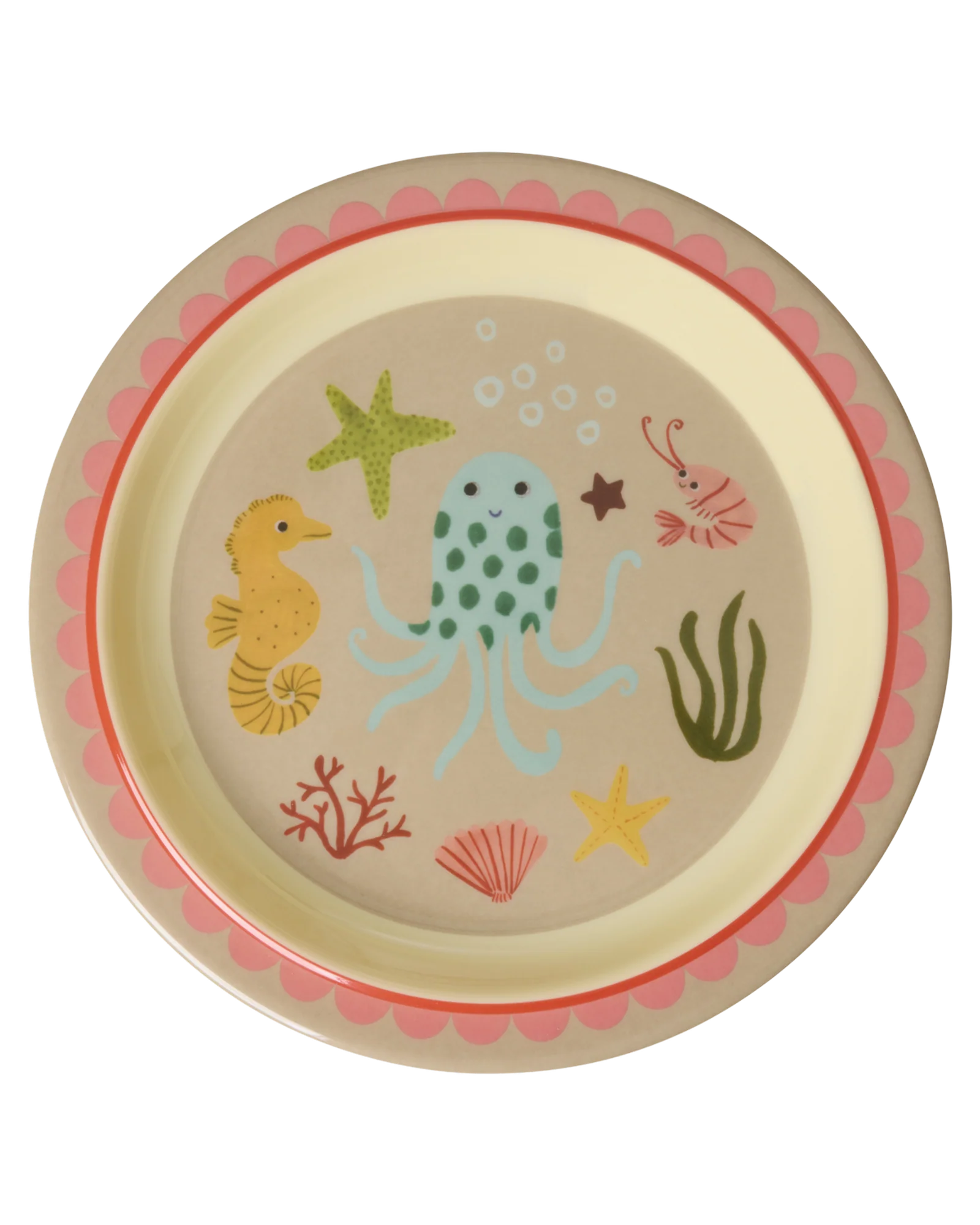 Rice: Rond melamine kinderbord – Ocean Print Koraal KILPL-OCEI
